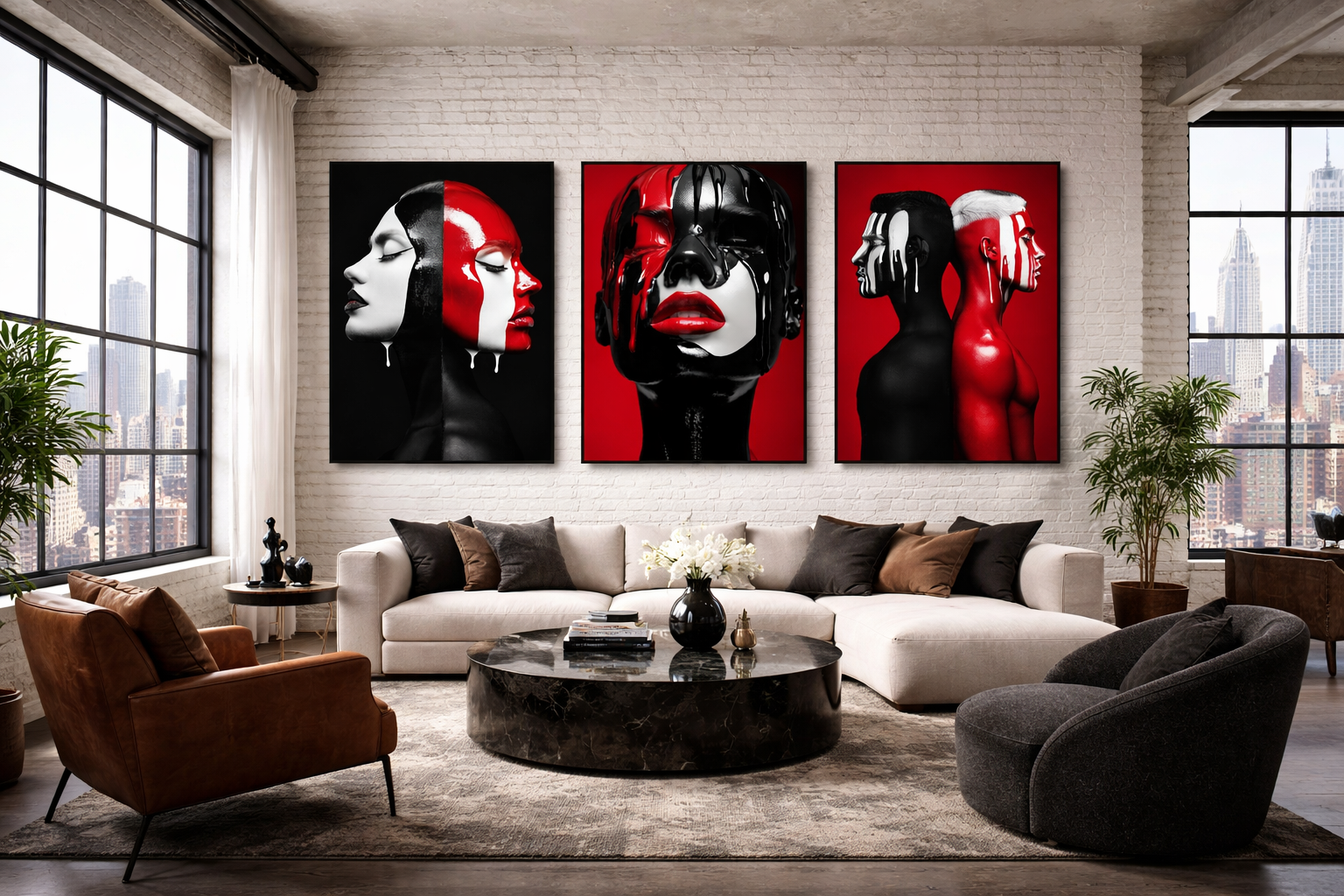 One-of-a-kind originals—contemporary portrait pieces for refined interiors—available until acquired.